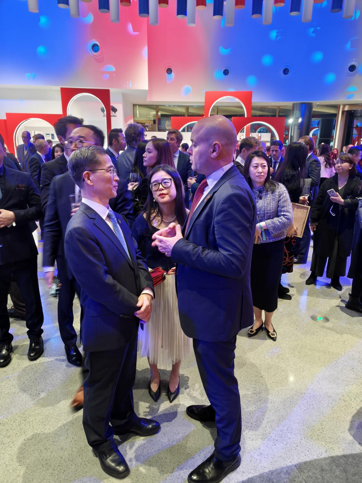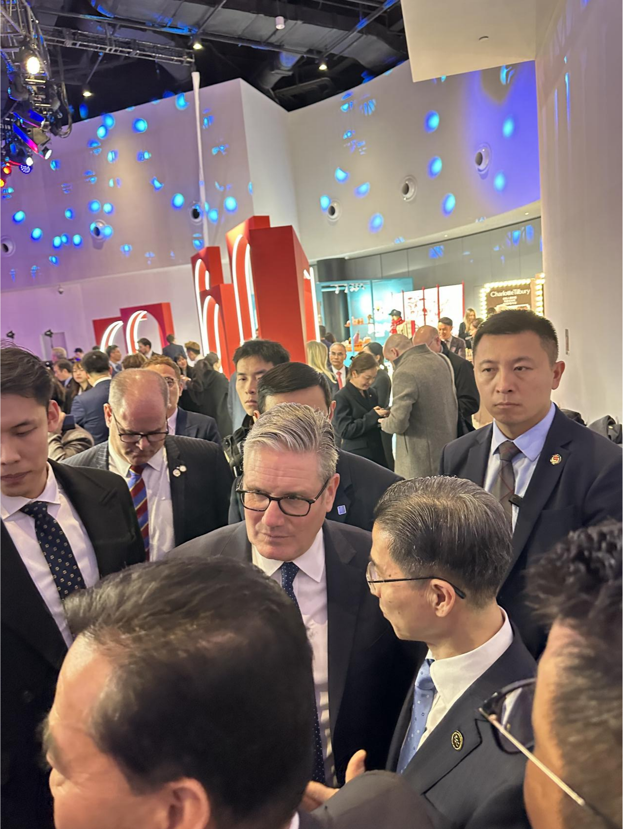 招待会期间,周汉民会长与斯塔默首相进行了亲切友好的交流,周汉民会长向斯塔默首相介绍了2010年上海世博会期间英国国家馆的恢弘设计和构思及利物浦市在城市最佳实践区的精彩展出,首相深感欣慰。